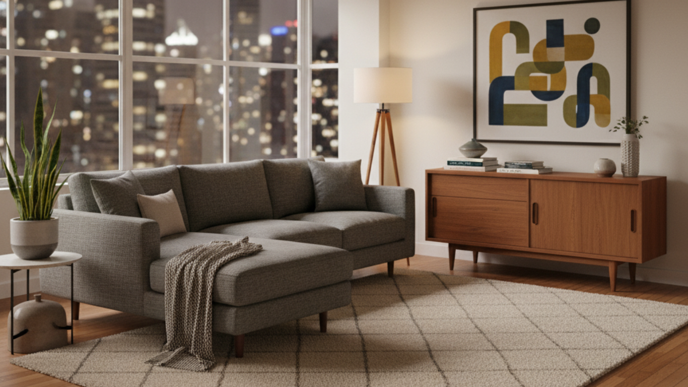 A mid-century modern couch or solid wood coffee table instantly adds structure and balance to any space without feeling heavy or outdated. The focus is always on form meeting function, something that never goes out of style.