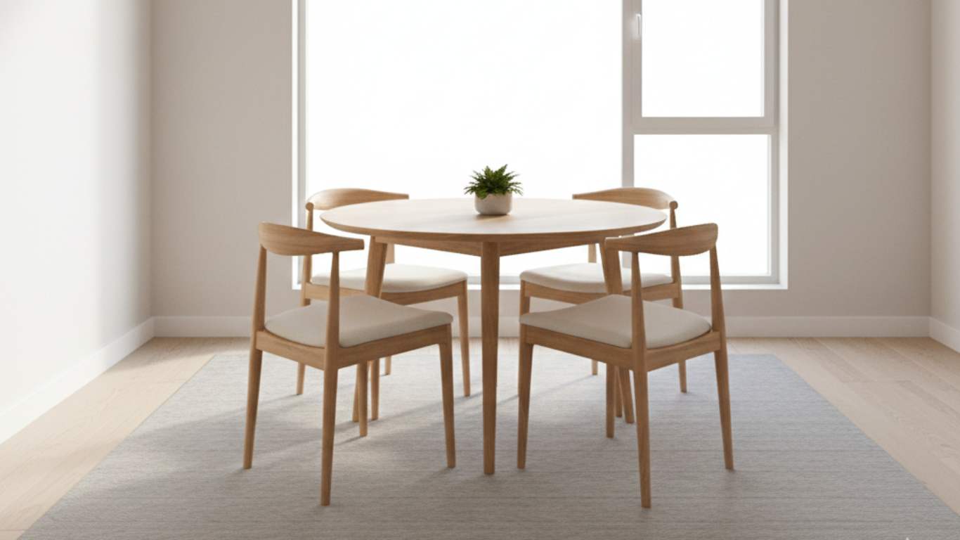 Sharp corners visually box in a room. Round tables soften the layout, improve flow, and take up less visual space, making small dining areas feel less cramped.