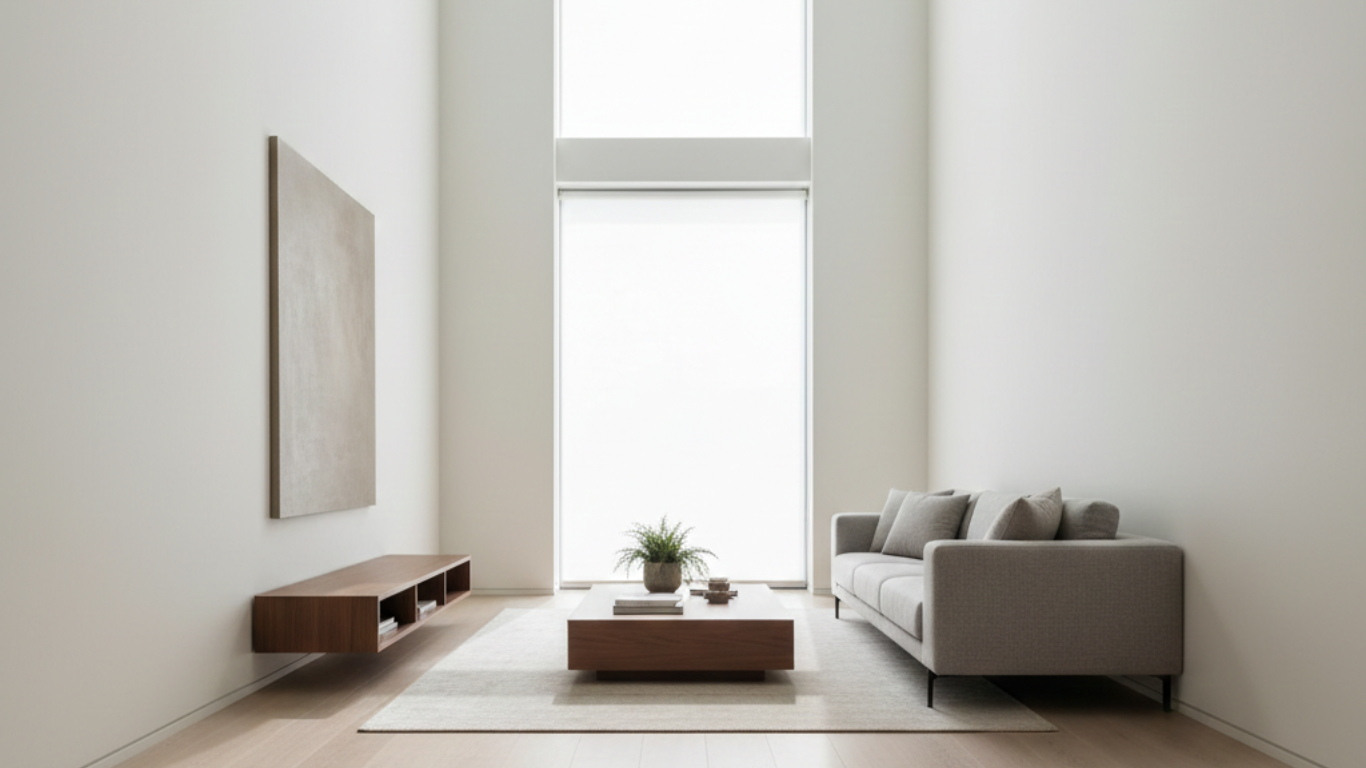 Lower furniture draws the eye upward, making ceilings feel higher. Low-profile sofas, beds, and media units create a more open vertical experience.